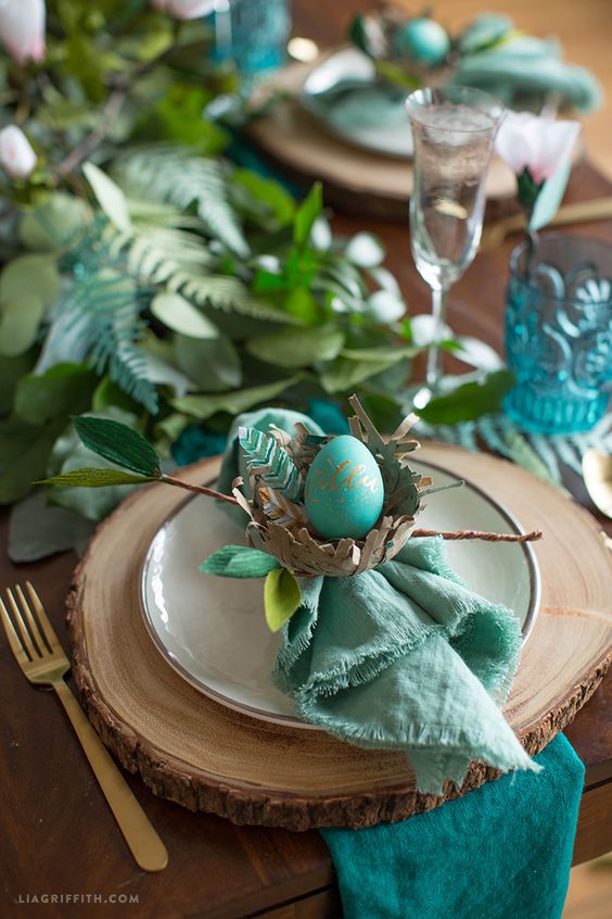- Decorate a mano tante uova (bollite precedentemente) quanti sono gli ospiti e utilizzatele come segnaposto.