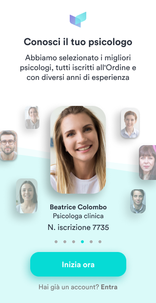 Poi, forse per caso, forse perché il tuo angelo custode ti ha voluto mandare un segno, navigando sull’app store ti compare nella home una app di psicologi online e la scarichi…